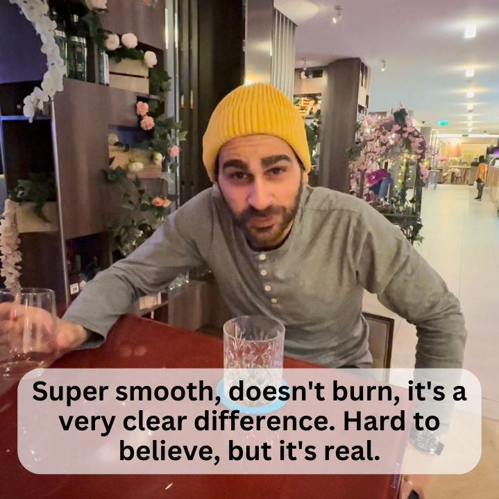 The key lies in our proprietary technology that emits a specific frequency range, targeting the fusel oils in alcohol. These fusel oils are responsible for the harshness, bite, and burn in drinks,